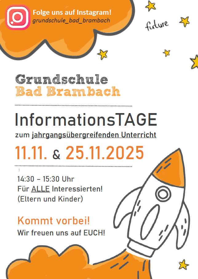 Am 11.11. & 25.11.2025 von 14:30 – 15:30 Uhr finden an unserer Grundschule die Informationstage für die neuen Schulanfänger zum jahrgangsübergreifenden Unterricht statt. Hierzu sind alle Interessierten, Kinder und Eltern recht herzlich eingeladen.